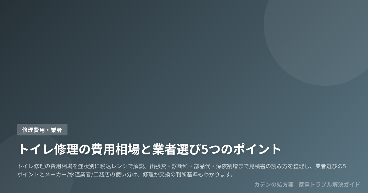 とくに10年以上使った一体型やタンクレストイレでは、修理案だけだと「今直るか」しか見えず、「次にいくらかかるか」が抜け落ちます。