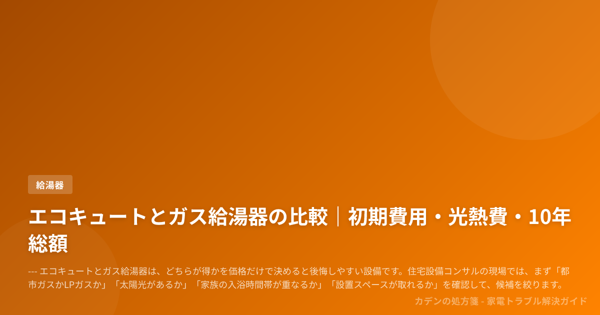 エコキュートとガス給湯器の比較|初期費用・光熱費・10年総額