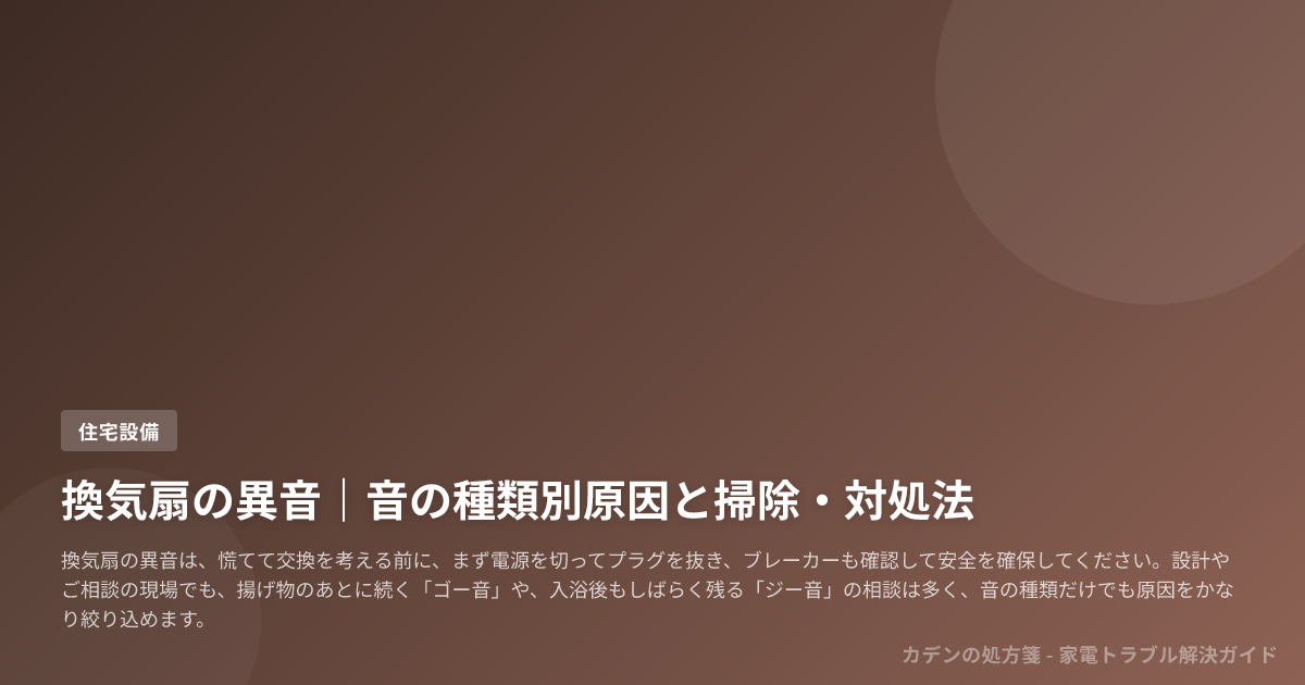 換気扇の異音は、慌てて交換を考える前に、まず電源を切ってプラグを抜き、ブレーカーも確認して安全を確保してください。