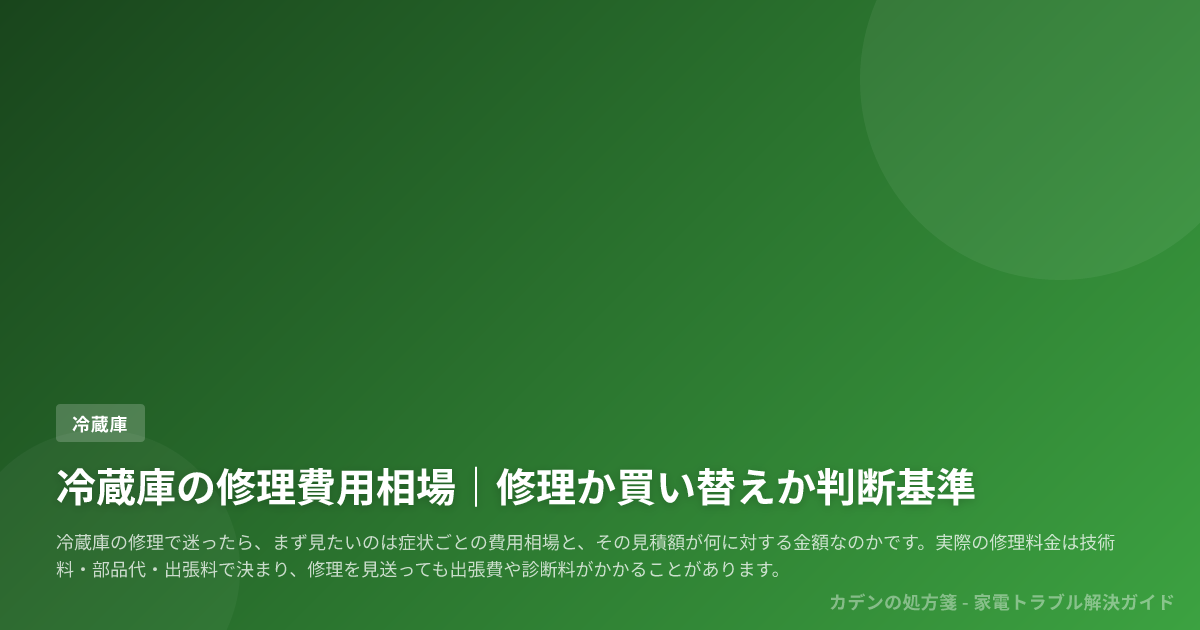 冷蔵庫の修理で迷ったら、まず見たいのは症状ごとの費用相場と、その見積額が何に対する金額なのかです。