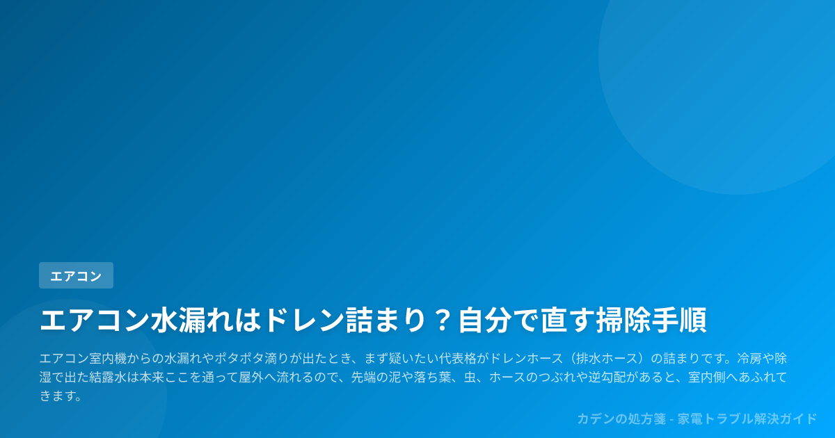 この記事では、水漏れの原因がドレン詰まりかを見分けるポイントから、電源を切ってコンセントを抜いたうえでできる所要10〜15分の安全な掃除手順、試運転での確認、直らないときに疑う別原因まで順番に整理します。
